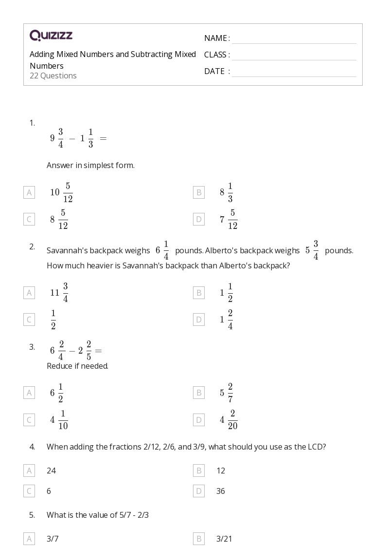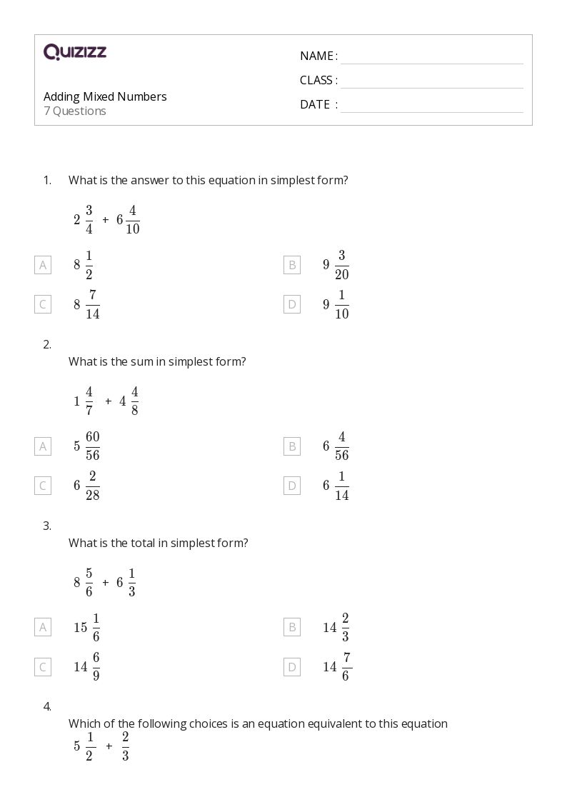 Locating complimentary 50+ adding mixed numbers worksheets for 5th grade on quizizz can be simple and accessible, you may use the browser and check out online platforms that excel in offering free stuff. Be choosy about the webpages you check out, pick well-known sites that give high-quality, accurate files.